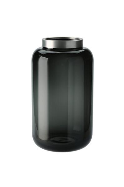 Saigon, vase en verre avec anneau en métal, M, coloris gris/argent. Hauteur 32cm x Ø 17cm